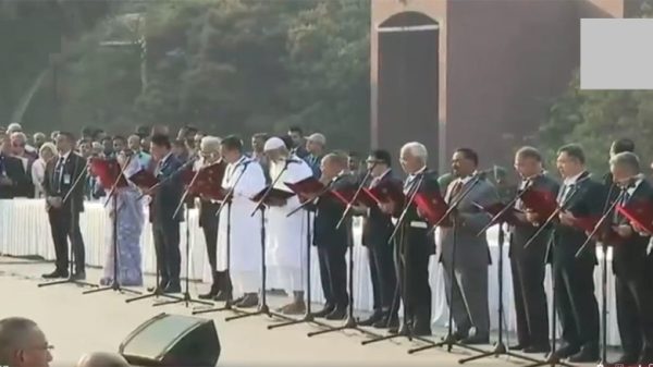বিএনপি চেয়ারম্যান তারেক রহমান প্রধানমন্ত্রী হিসেবে শপথ নিয়েছেন। আজ মঙ্গলবার (১৭ ফেব্রুয়ারি) বিকেল ৪টার পর জাতীয় সংসদ ভবনের দক্ষিণ প্লাজায় এক বর্ণাঢ্য অনুষ্ঠানের মাধ্যমে দেশের ১১তম প্রধানমন্ত্রী হিসেবে শপথগ্রহণ করেন তিনি। তারেক রহমানকে রাষ্ট্রপতি মো. সাহাবুদ্দিন তাকে শপথ পাঠ করান। একই অনুষ্ঠানে নতুন মন্ত্রিসভার সদস্যরাও শপথ নেন। সকালে বিস্তারিত