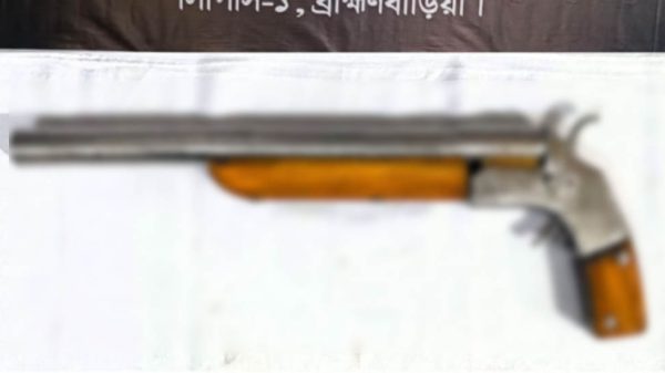 তারা জানায়, মঙ্গলবার (২নভেম্বর) রাত সোয়া ৯টার দিকে ব্রাহ্মণবাড়িয়া সদর মডেল থানার ভাদুগর শান্তিনগরের একটি কাশবন থেকে পাইপগানটি উদ্ধার করা হয়।