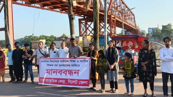 প্রাথমিক বিদ্যালয়ে শারীরিক শিক্ষা ও সংগীত শিক্ষক পদ পুনর্বহালের দাবিতে শনিবার বিকাল ৩টায় শারদা হলের সম্মুখে চারণ সাংস্কৃতিক কেন্দ্র সিলেট জেলার আয়োজনে মানববন্ধন অনুষ্ঠিত হয়। সংগঠনের জেলা আহ্বায়ক বিস্তারিত